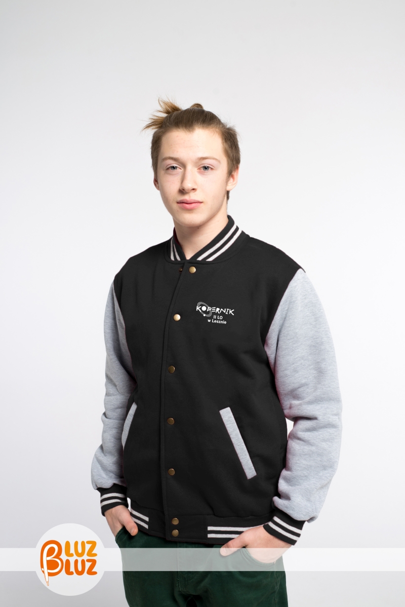 Bejsbolówka – klasyczna bluza ze ściągaczami w paski , zapinana na napy. Na piersi haftowane logo. Można wybrać również dodatkowy haft logo na plecach.