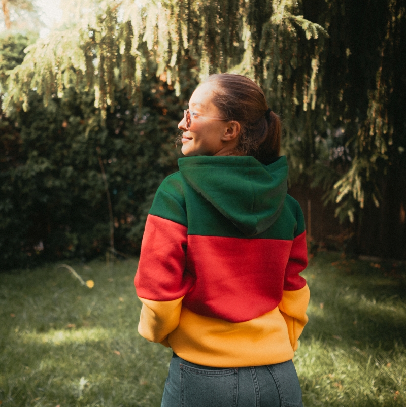 Uwaga! do pierwszego prania ubranie noszone pod bluzą może obłazić meszkiem w kolorze bluzy. Jest to pozostałość po technologicznej obróbce lewej strony dzianiny. Zalecamy uprać przed założeniem.