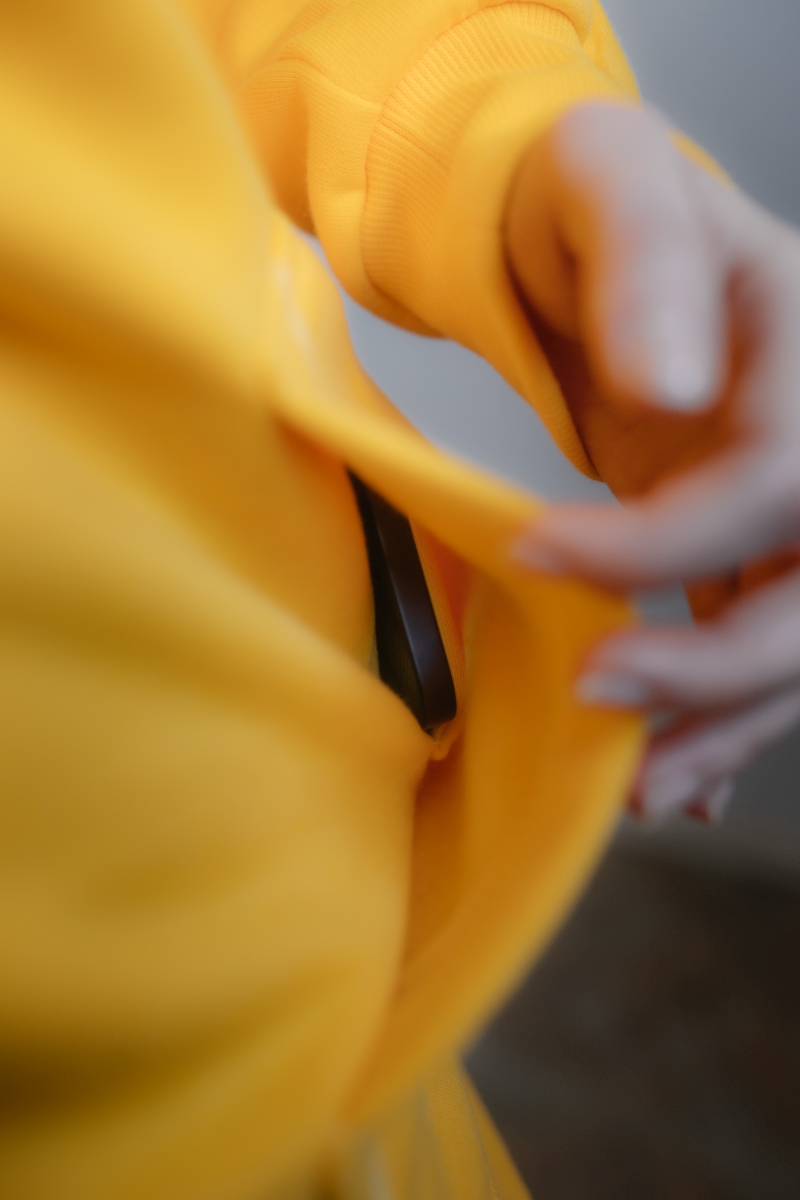 Duża, wygodna kieszeń ukrywa w swoim wnętrzu drugą małą kieszonkę doskonale nadającą się na schowanie telefonu. Specjalnie pomyślana dla osób lubiących chodzić w leginsach 🙂 Zaprojektowaliśmy ją tak aby Twój telefon czuł się w niej bezpiecznie i nie wypadł nawet podczas pogoni za autobusem 🙂